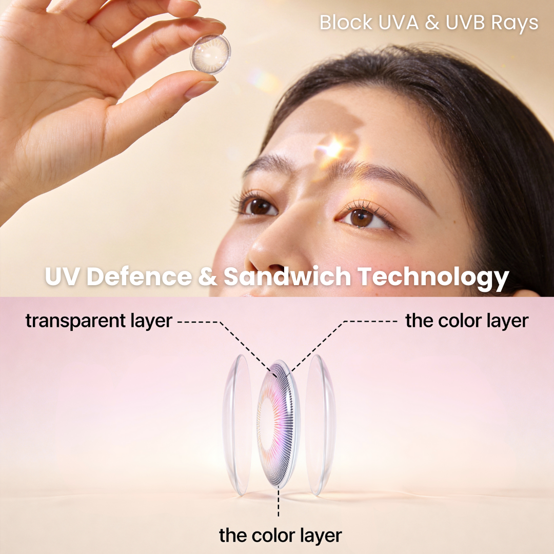 Our contact lenses are crafted with advancedsandwich technology, designed to prevent direct contact between the pigment and your cornea. This ensures maximum comfort and safety for your eyes, giving you peace of mind while enhancing your look.